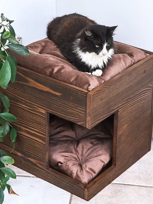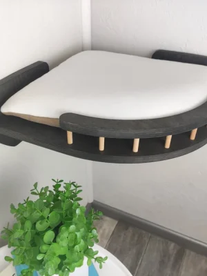 These cat steps and shelves are made of high-quality shutterply, which is a type of plywood. They are sealed with a water-based clear sealer to protect them from moisture and scratches. The steps and shelves come with screws for easy installation, so you can easily create a safe and stylish climbing space for your cat.